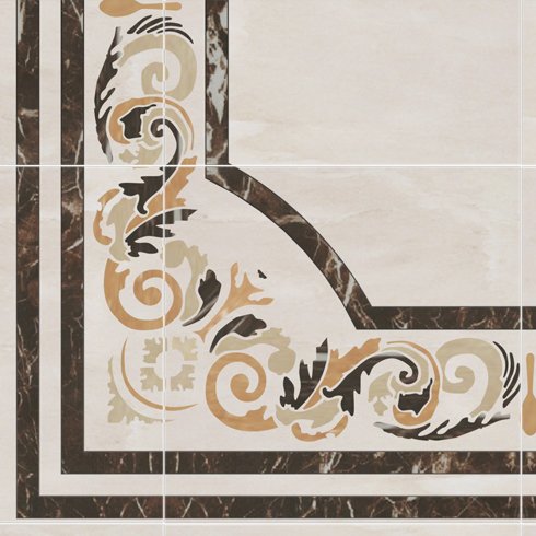 1 цвет плитки, 1 формат, 3 декоративных сюжета разных размеров.