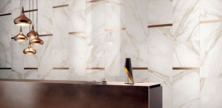 34 цвета плитки под мрамор, 10 видов формата, 2 поверхности, более 15 декоров, 4 мозаики.