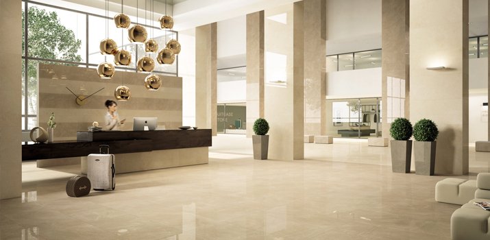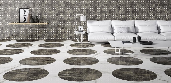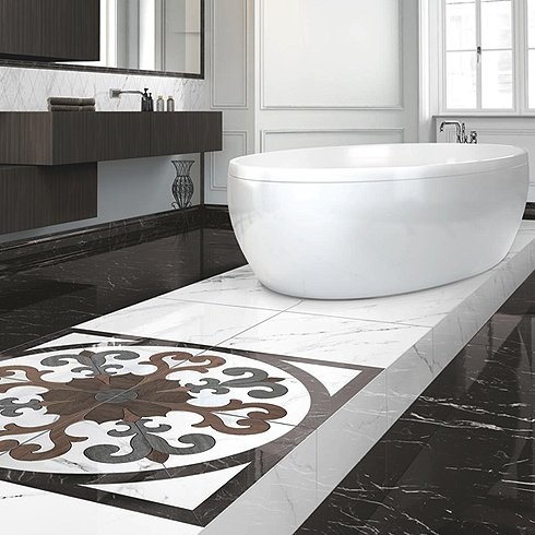 6 кольорів плитки під мармур, 2 види поверхні, 6 розмірів плитки для підлоги, 4 розміру настінного плитки, більше 15 видів декору, 10 видів мозаїки.